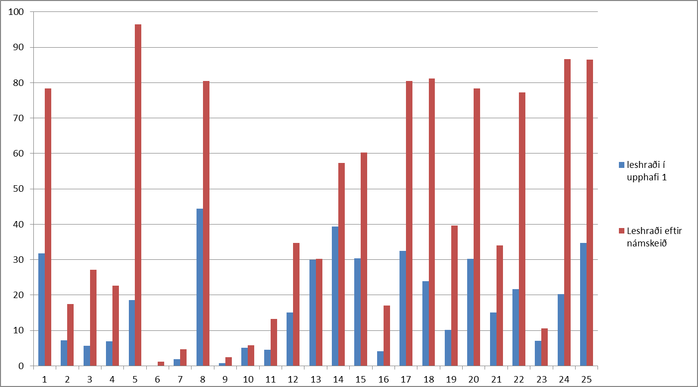 Á sama tíma og við gleðjumst yfir þessum góða árangri vekur hann einnig upp spurningar. Hvers vegna eru nemendur sem ættu ekki að þurfa að vera undir viðmiðum um lestrarvanda í svona miklum vanda? Getur verið að áherslan á lestur detti niður á unglingastigi og að nemendur lesi fyrst og fremst skólabækur og texta í snjallsímum og tölvum. Annar lestur er kannski ekki svo mikill. Ef nemendur lesa ekki reglulega er hætta á því að þeim fari aftur í lestri. Til þess að viðhalda færni sinni þurfa nemendur að lesa bæði heima og í skóla, líka eftir að þeir teljast hafa náð góðri færni. Árangur nemenda af þessu litla námskeiði sýnir að til að auka við árangur sinn eða viðhalda honum þarf ekki mikinn tíma í reglulegan markvissan lestur.