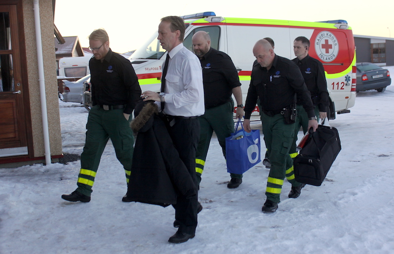 Sjúkraflutningamenn langar líka að færa starfsfólki hjá Íslandsbanka sérstakt þakklæti fyrir þolinmæði og jákvæðni í sinn garð sem og Lýð G. Guðmundssyni, ljósmyndara hjá Ljósmyndastofu Suðurlands, fyrir myndatökurnar.