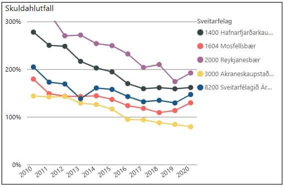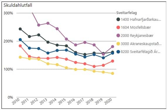Ég tók nokkur sveitarfélög til samanburðar, öll á suðvesturhorninu og í svipuðum stærðarflokki fyrir utan Hafnarfjörð sem er töluvert fjölmennari. Árið 2010 eru öll sveitarfélögin illa stödd eftir hrunið nema Akranes. Árborg er á þessum árum í miðju þessara sveitarfélaga og skuldahlutfallið 205%. Skuldir lækka næstu árin hjá þeim öllum og fór skuldahlutfallið hjá Árborg lægst á árinu 2019 í 129% á fyrsta heila ári núverandi meirihluta. Lægst fór hlutfallið hjá meirihluta Sjálfstæðisflokksins árið 2017 í 132. Árið 2020 hækkar skuldahlutfallið hjá þeim öllum nema Akraneskaupstað og er 147% hjá Árborg. Skýringin er augljós þ.e. Covid en þá var skuldaviðmiðunarhlutfallið hækkað í 200% til ársins 2025 og sveitarfélögin hvött af ríkisstjórninni til að auka framkvæmdir til að sporna gegn óæskilegum áhrifum faraldursins. Óhætt er að fullyrða að vel hafi tekist til í þeim efnum í Árborg, blússandi atvinnulíf og næg atvinna. Í árslok 2020 er Árborg á svipuðu róli og þessi samanburðarsveitarfélög. Ég hef ekki tölur úr ársreikningum þessara sveitarfélaga fyrir árið 2021 en reikna með að skuldir þeirra flestra hfaf hækkað á milli ára, en tel ólíklegt að einhver sérstök straumhvörf hafi orðið í rekstri þeirra.