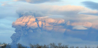 Askan þyrlast upp