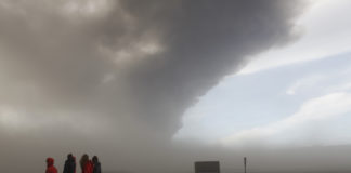Eldfjallið dregst hægt saman