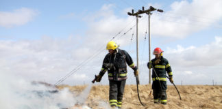 Rafmagnslína slitnaði og olli sinubruna