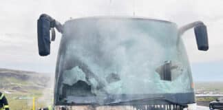 Rúta stórskemmdist í eldi