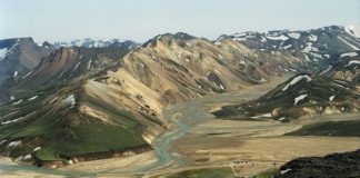 Grjóthrun í Landmannalaugum vegna jarðskjálfta