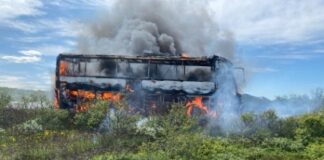 Allir sluppu ómeiddir úr brennandi rútu