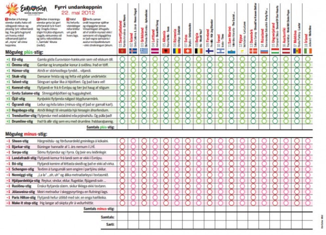 Þú getur hlaðið Eurovision stigaspjaldinu niður hérna og prentað það út og svo er bara að njóta stemmningarinnar