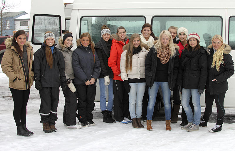 Fjórtán glæsilegar stúlkur taka þátt í keppninni og standa þær nú í ströngu í undirbúningi fyrir keppnina.