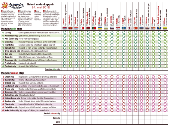 Hér er hægt að nálgast spjaldið fyrir seinna undanúrslitakvöldið.