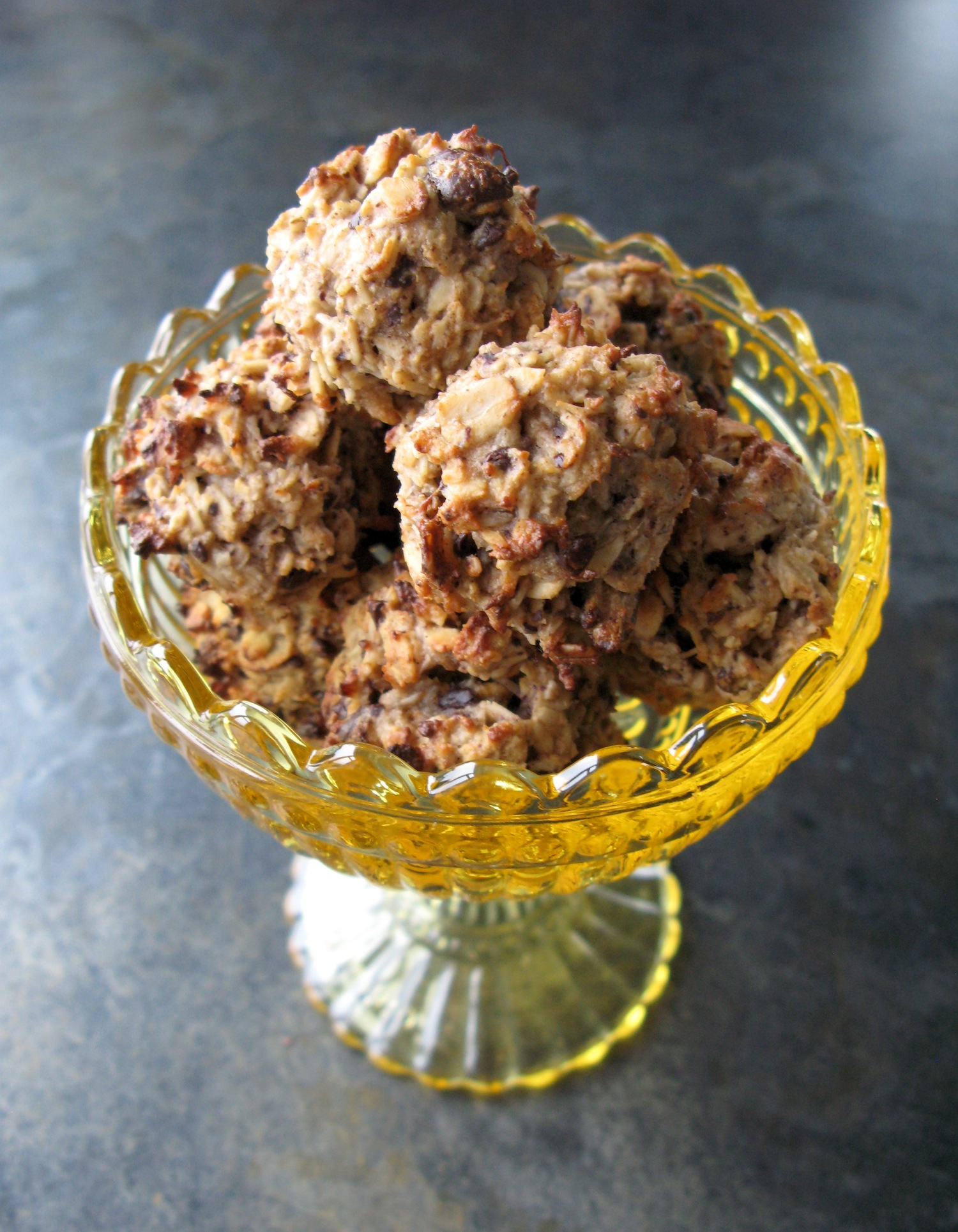 ATH. Ég hvet ykkur eindregið til að laga þessa uppskrift – sem og aðrar – að ykkar smekk. Það er líka gott að kurla hnetur og setja saman við, setja kakónibbur í staðinn fyrir súkkulaðið eða bara sleppa súkkulaðinu alveg. Eins er gott að nota aðra sætu en eplamauk, t.d. hunang eða hlynsíróp (ath. þá þurfið þið minna magn). Látið tilfinninguna ráða og leikið ykkur með hráefnin. Matargerð er mitt jóga enda róandi og skemmtilegt sport.