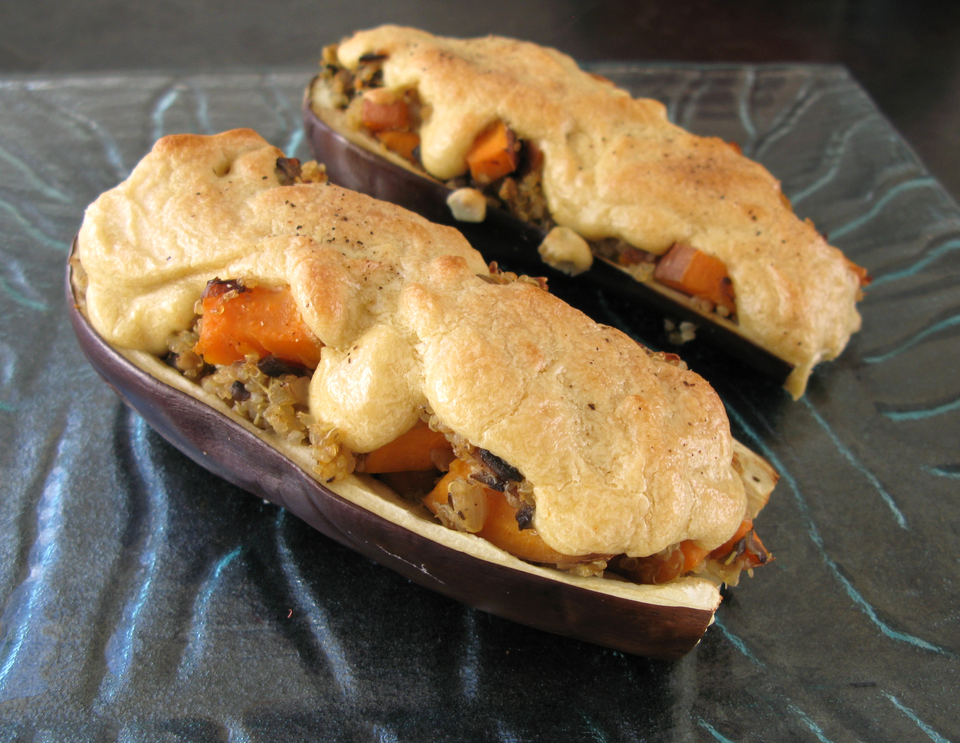 Mæja vinnur hjá Lifandi markaði í Borgartúni (allir þangað!) og fékk hún sambærilegan rétt í vinnunni. Eða réttara sagt fékk hún fyllt eggaldin. Það er svo skemmtilegt með mat að stundum þarf maður ekki uppskriftina – stundum er bara nóg að fá hugmynd að rétti og svo föndrar maður eitthvað sniðugt í eldhúsinu.