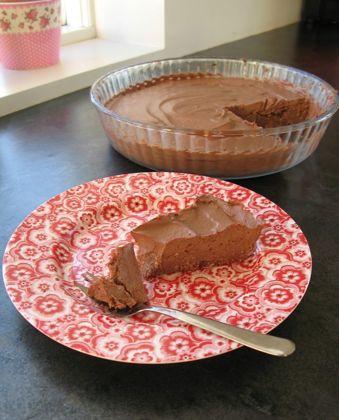 Allt sett í blandara og blandað þar til blandan er orðin silkimjúk. Blöndunni er síðan hellt yfir botninn og sett inn í frysti í hálftíma eða svo, þá ætti kakan að vera orðin tilbúin.