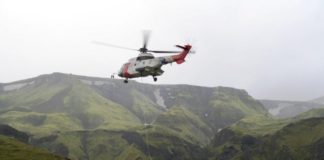 Gæsluþyrla flutti efni í göngustíga