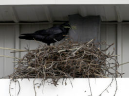 Hrafnslaupur á óvenjulegum stað