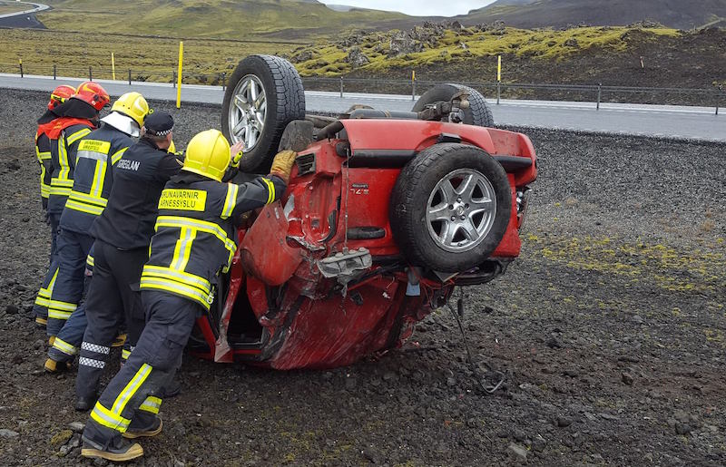 Sluppu lítið meidd úr bílveltu