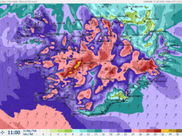 Gul viðvörun á laugardag