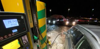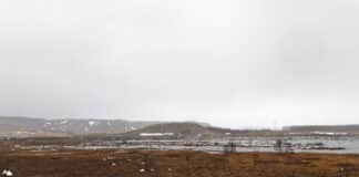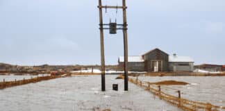 Flóð hreif með sér vinnupalla og búnað en brúin slapp