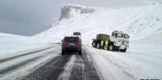 Rúta fauk útaf við Reynisfjall