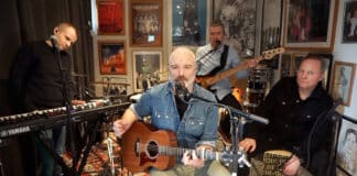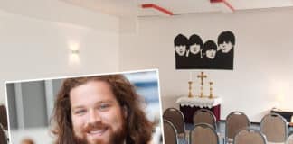 Maður í mislitum sokkum undir Eyjafjöllunum