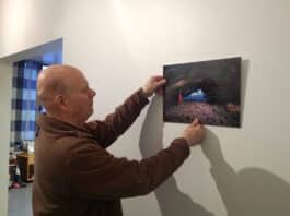 Guðmundur sýnir undir stiganum
