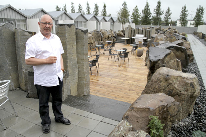 Búið er að koma upp fallegum veitingagarði við Hótel Flúðir og var hann formlega tekinn í notkun í síðustu viku.