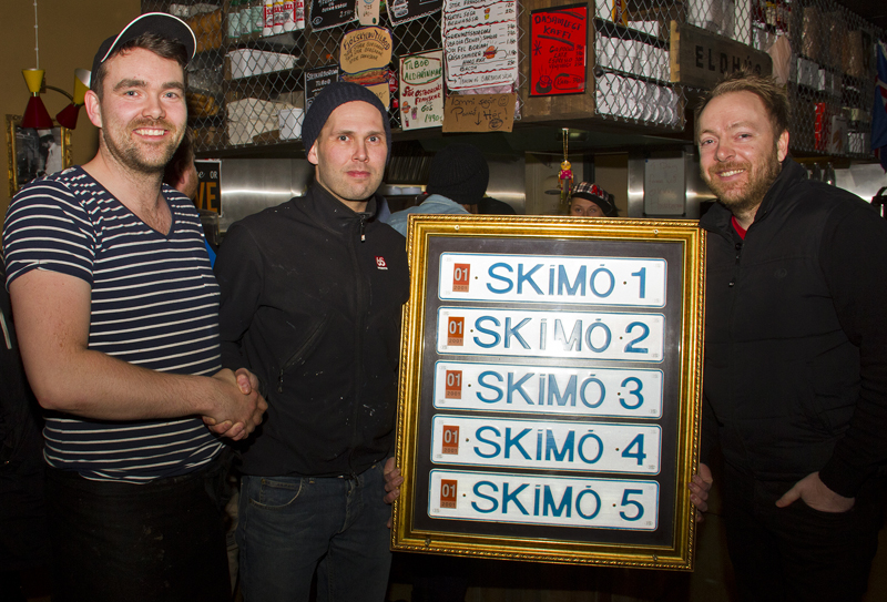 Um er að ræða innrammaðar fimm númeraplötur sem eru merktar Skímó 1 uppí 5. Númeraplötur þessar eru eins og þær sem voru áður á bílum meðlima hljómsveitarinnar Skítamórals.
