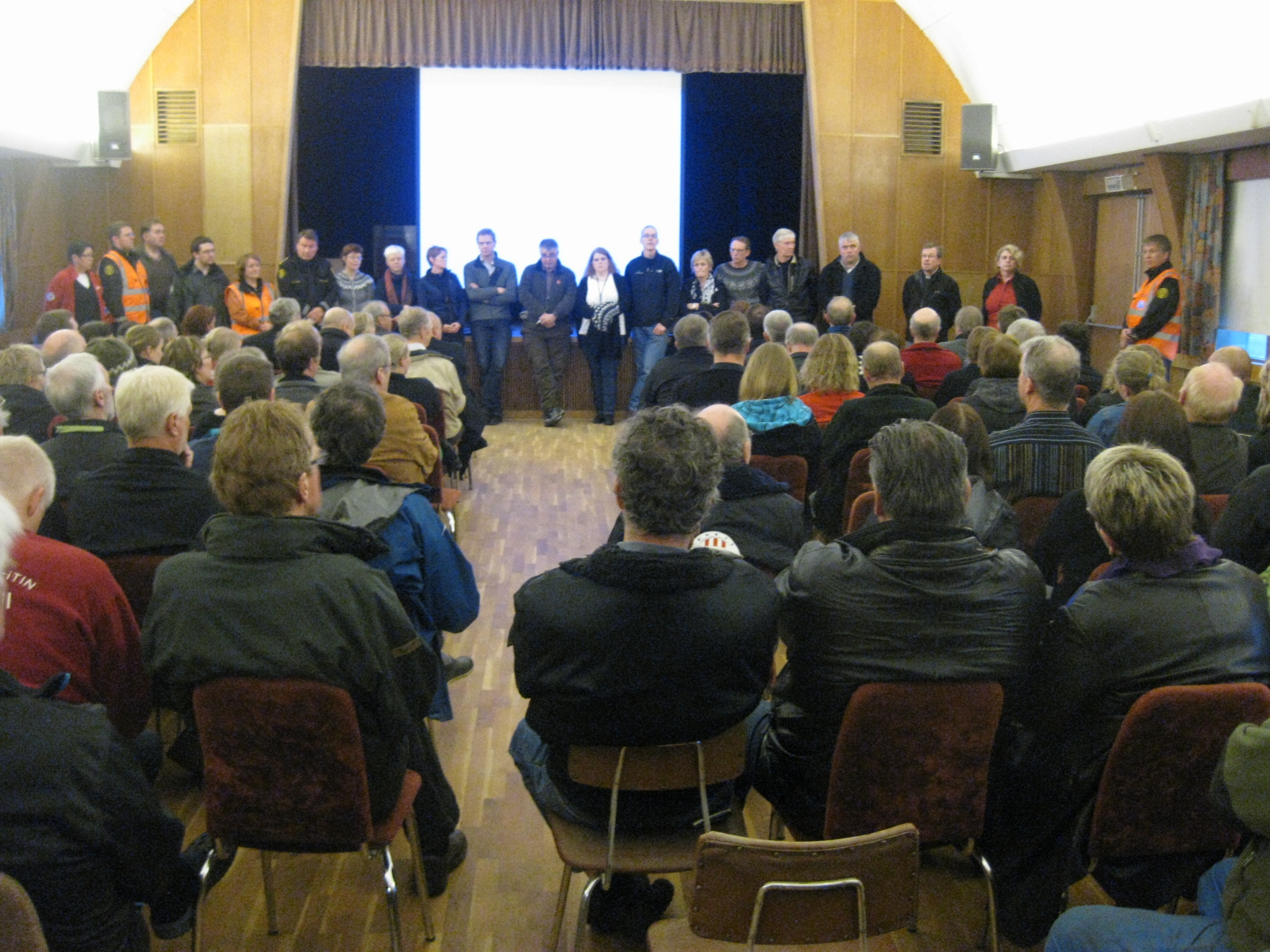 Fjölmennur íbúafundur var haldinn í félagsheimilinu á Kirkubæjarklaustri í gær. Þar var m.a. farið yfir fyrirhugað starf Þjónustumiðstöðvar almannavarna á Kirkjubæjarklaustri.
