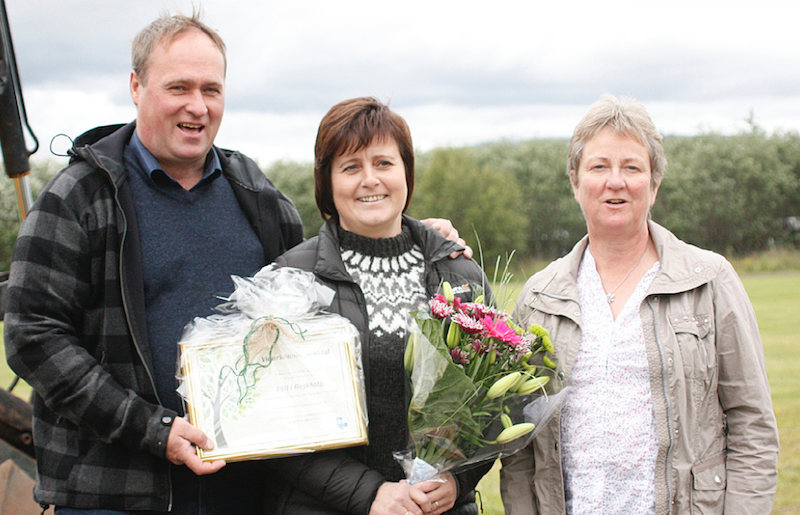 Það er mjög skemmtilegt er að sjá hvernig þau Ásta Rut og Sveinn beita hrossunum inni á miðri lóð og láta þau hjálpa til við umhirðuna,“ segir Sigríður Jóna Sigurfinnsdóttir í Hrosshaga, formaður umhverfisnefndar sem veitt verðlaunin á sveitahátíðinni „Tvær úr tungunum“ um síðustu helgi.