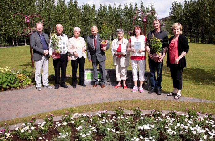 Viðurkenningar fyrir fegurstu garðana í Hveragerði árið 2013 voru afhentar í Listigarðinum Fossflöt um síðustu helgi.
