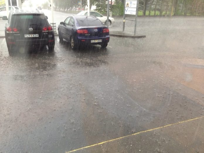 Gríðarlegt þrumuveður hefur verið á Suðurlandi eftir hádegi í dag með rigningu og hagléli á tímabili á Selfossi og nágrenni.