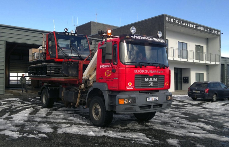 Alls tóku um 40 manns þátt í aðgerðinni á vélsleðum, snjóbílum auk þess sem fjallabjörgunarmenn voru til taks á Þingvöllum ef á þyrfti að halda.