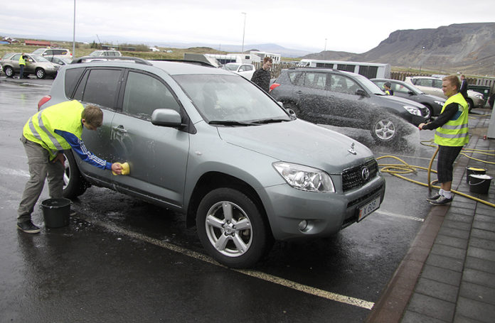 Þjónustudagur Toyota er í dag um allt land og á Selfossi slógu menn ekki slöku við í bílaþvottinum í morgun.
