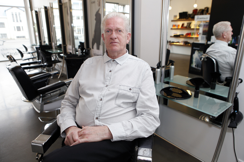 Á myndinni situr Leif í rakarastólnum sem hann hefur notað frá upphafi og segist ekkert vera á leiðinni að hætta. „Nei, nei, ég á eftir að nota þennan stól í þrjátíu ár í viðbót,“ segir Leif kíminn en hann er 67 ára í dag.