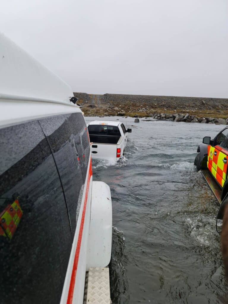 Farið var á tveimur bílum og þegar að var komið kom í ljós að einn bíll var fastur á vaði í Köldukvísl. Bíllinn var dreginn á þurrt, og ákvað ökumaður í kjölfarið að snúa við.