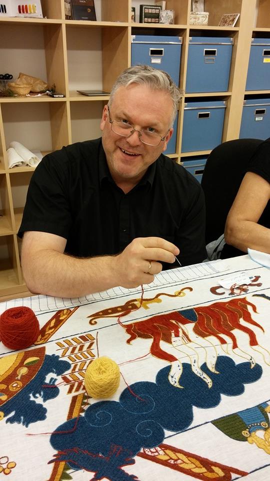 Fyrir skömmu kom góður gestur í heimsókn í Refilstofuna í Sögusetrinu á Hvolsvelli en þar var mættur Ágúst Sigurðsson, sveitarstjóri Rangárþings ytra og bóndi í Kirkjubæ á Rangárvöllum.
