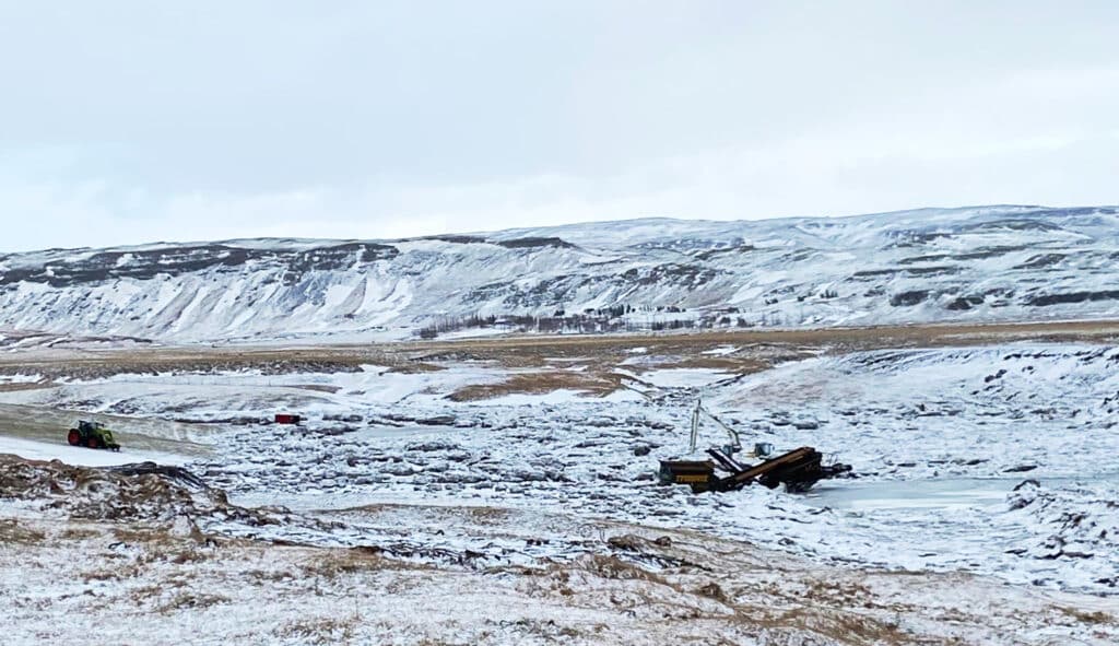 Vinnuvélar frá verktakafyrirtækinu Orion voru í Grófarnámunni, malarnámu á bökkum Hvítár, fyrir framan Skollagróf en þær björguðust úr flóðinu.