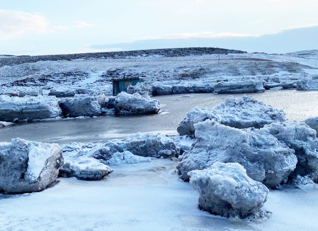 „Grafa sem var í námunni fór í gang og komst í land og öðru var bjargað með henni,“ sagði Helgi en hann tók myndirnar sem fylgja þessari frétt og sýna þær vel hverslags kraftar voru að verki.