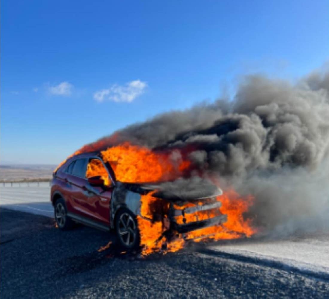 „Þetta var bílaleigubíll á leið upp Kambana, fólkið varð vart við eld og stoppaði og komst út, en þegar við komum á staðinn var mikill eldur í bílnum og hann er mikið skemmdur, sagði Lárus Kristinn Guðmundsson,“ varaslökkviliðsstjóri Brunavarna Árnessýslu, í samtali við sunnlenska.is.