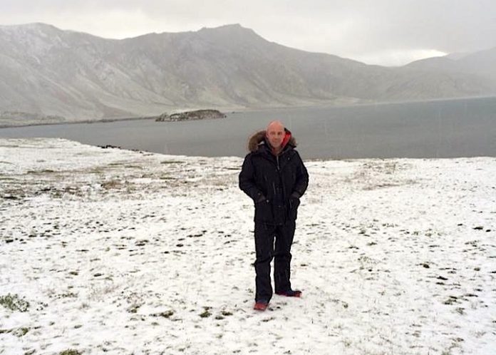 Gríðarmikið haglél féll á Landmannaafrétti í gærkvöldi og eins og sjá má á meðfylgjandi mynd var alhvít jörð við Frostastaðavatn.