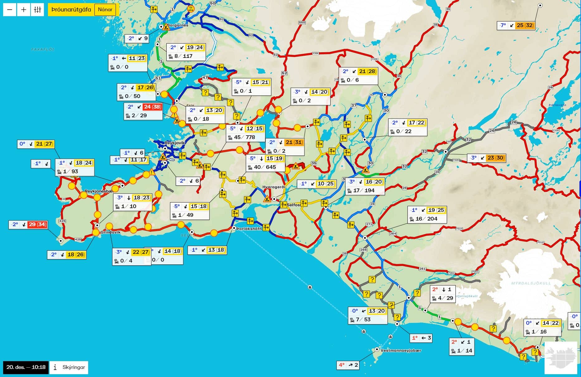 Umferðarþjónusta Vegagerðarinnar nær ekki að sinna öllum þeim fjölmörgu símtölum sem berast henni og því er fólk beðið um að fylgjast með á umferðarvef Vegagerðarinnar. Þar birtast upplýsingar um leið og teknar eru ákvarðanir um opnun og lokun vega.