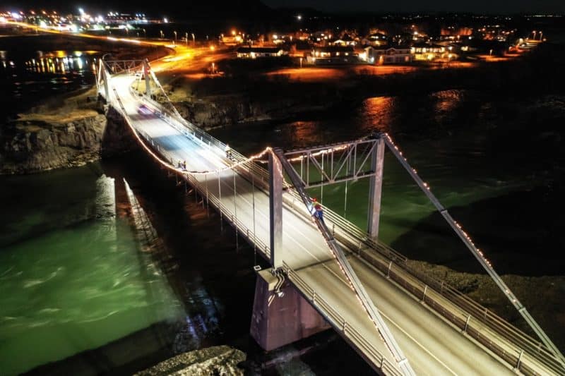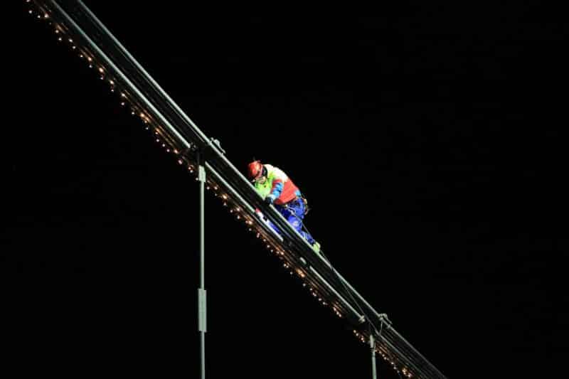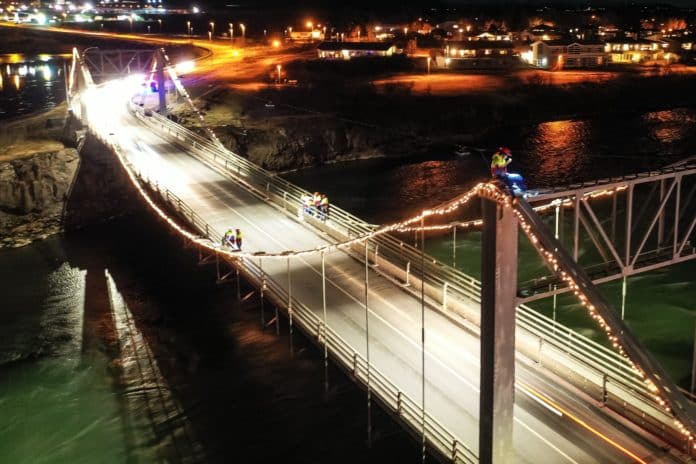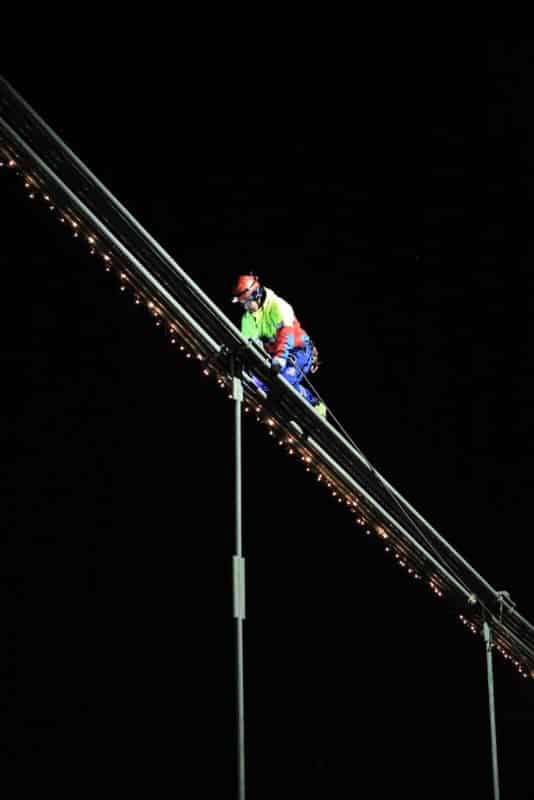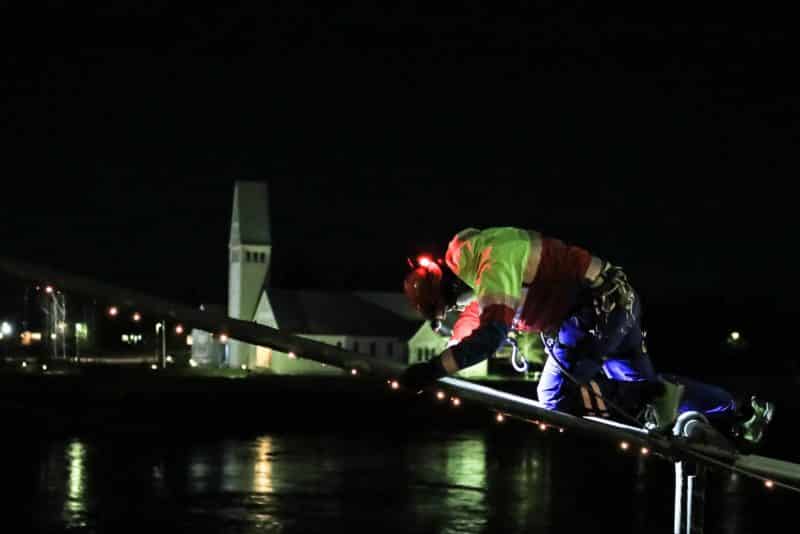 „Það eru um það bil þrjátíu ljósaseríur á brúnni og eins og síðustu ár þá förum við upp og skiptum út þeim seríum sem eru skemmdar. Oftast eru þetta þrjár til fimm seríur sem skemmast á hverju ári en við vorum heppin í ár því við þurftum aðeins að skipta út þremur seríum og aðeins ein þeirra var yfir turn,“ sagði Ágúst Ingi Kjartansson, hjá Björgunarfélagi Árborgar, í samtali við sunnlenska.is. Ágúst Ingi hefur séð um þetta verkefni hjá félaginu í hátt í tíu ár.