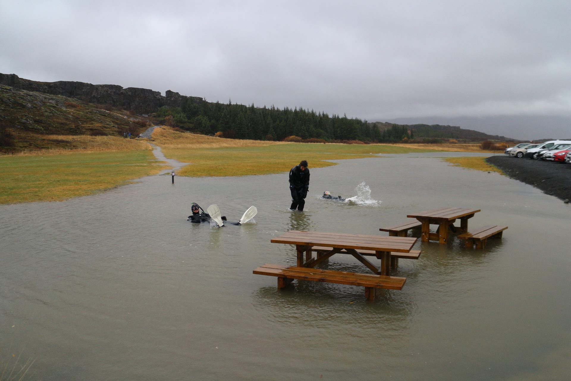Eins og myndin sem fylgir fréttinni sýnir, hafa kafarar í Silfru fundið aðra staði til þess að busla á í dag.