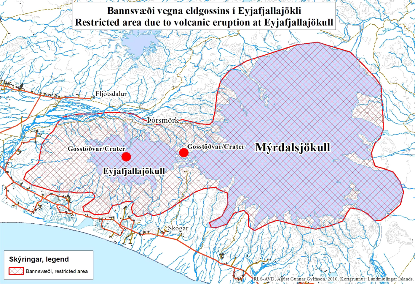 Lögreglan á Hvolsvelli minnir á að öll almenn umferð er bönnuð nærri eldstöðinni. Bannsvæðið nær yfir Eyjafjallajökul og hlíðar hans, Fimmvörðuháls og Mýrdalsjökul.