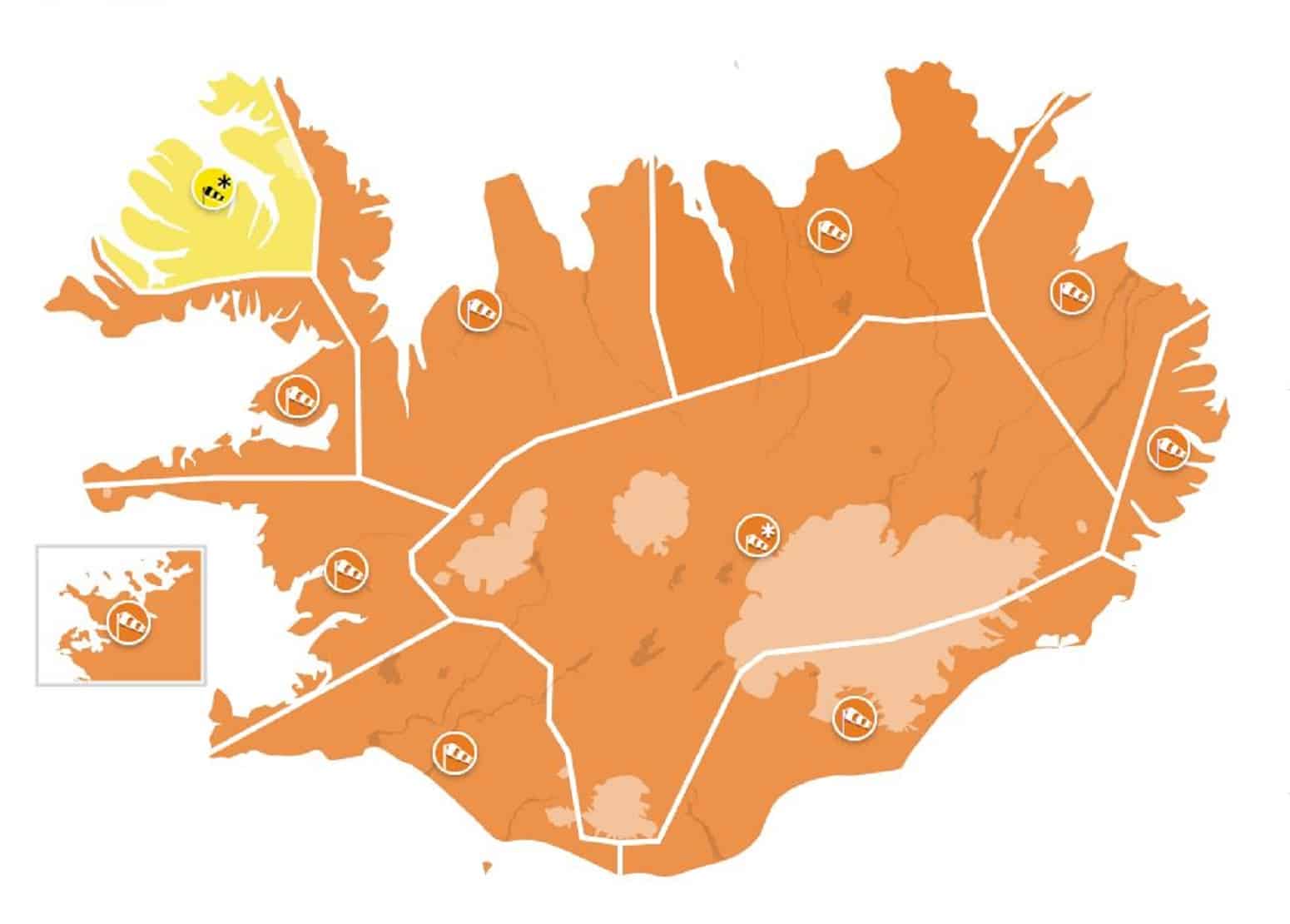 Raunar er appelsínugul viðvörun í gildi um nánast allt land vegna skila sem ganga hratt yfir landið.