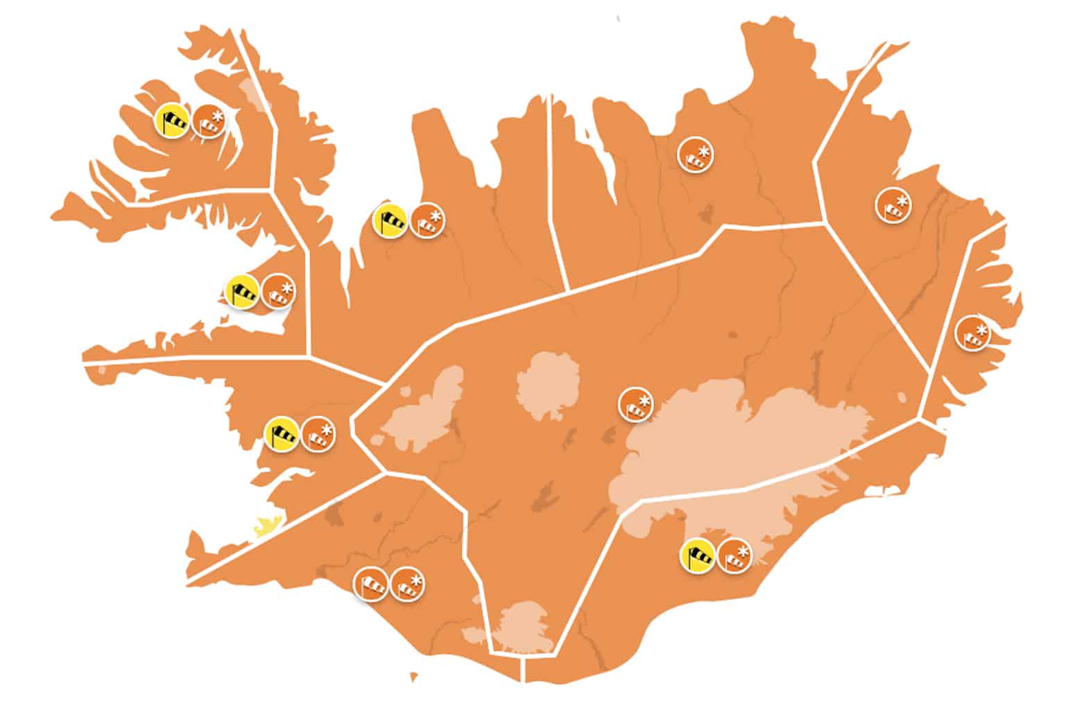 Veðurstofan hefur gefið út appelsínugula viðvörun sem gildir fyrir allt landið, nema höfuðborgarsvæðið, í dag og á morgun, sunnudag.