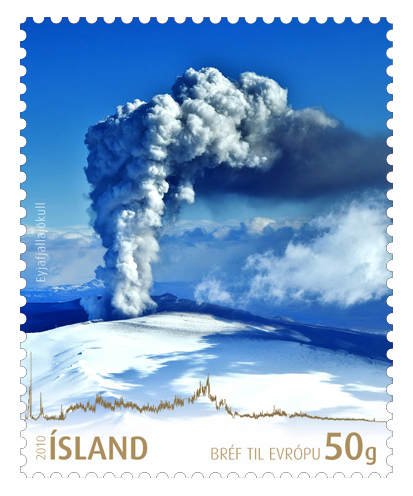 Íslandspóstur gefur út þrjú frímerki á morgun í tilefni eldsumbrotanna í Eyjafjallajökli fyrr á þessu ári.