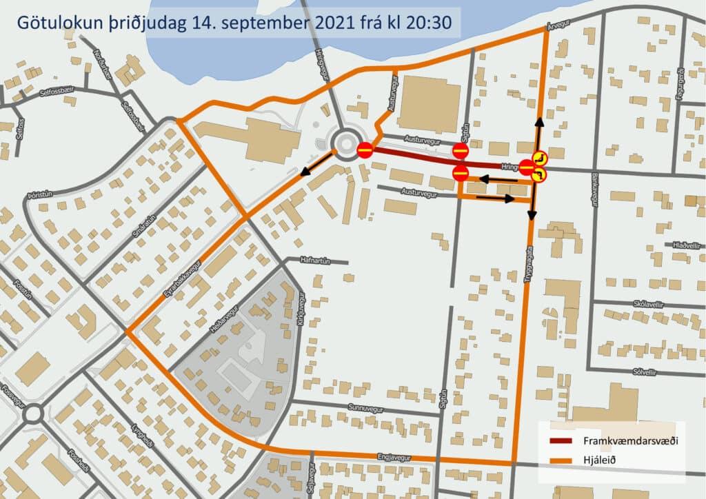Austurvegi á Selfossi verður lokað í kvöld kl. 20:30 á milli Tryggvatorgs og Tryggvagötu þar sem til stendur að fella nokkrar aspir við gangbrautir á götunni.