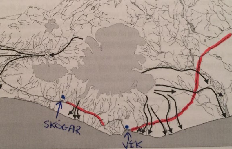 Lögreglan á Suðurlandi mælist til þess að ekki sé dvalið á víðavangi yfir nóttu allt frá Skógum að Dyrhólavegi og frá útjaðri Víkurþorps í austri að Kúðafljóti. Er þetta gert til að auðvelda viðbragðsaðilum ef til rýmingar kæmi. Um er að ræða svæðið sem er rauðmerkt á myndinni.
