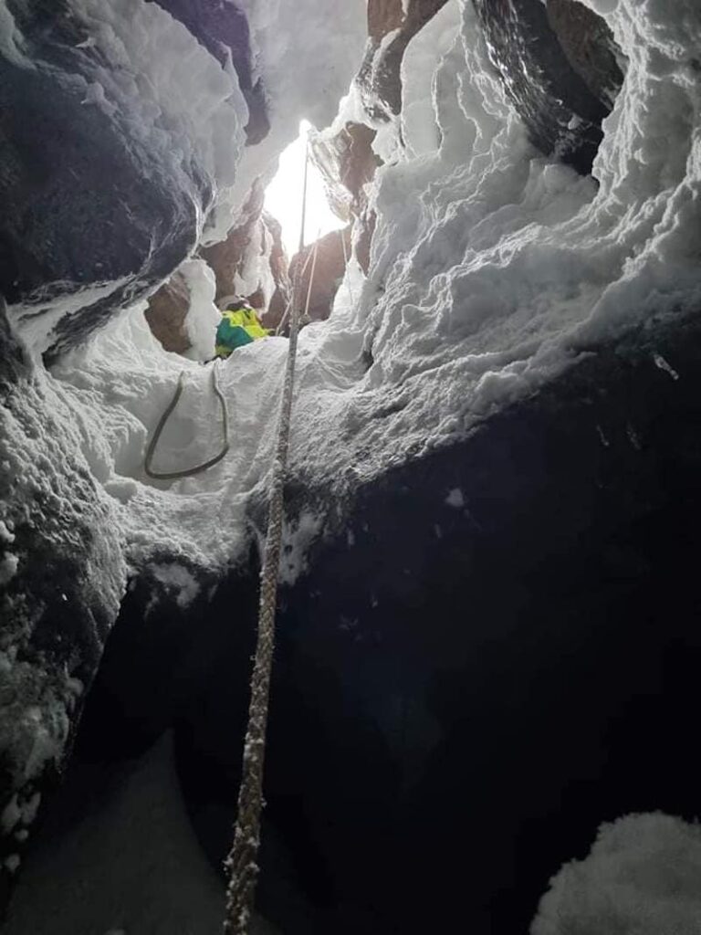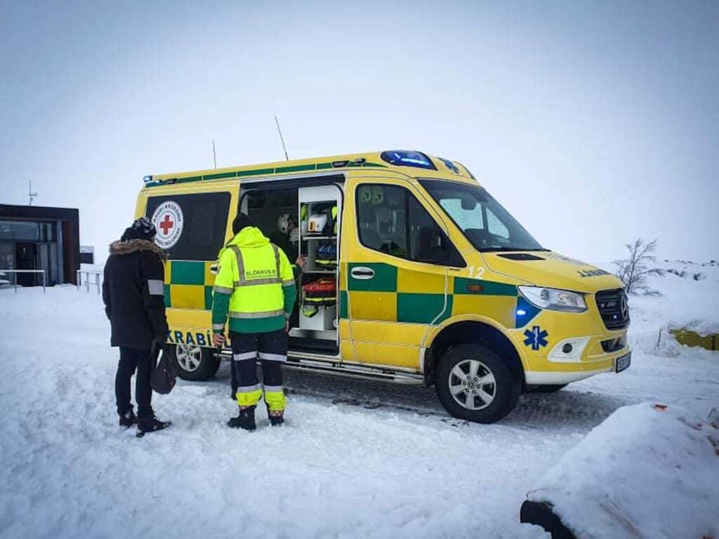 Aðstæður voru góðar fyrir utan mikið fannfergi sem huldi sprunguna að mestu. Drengurinn virtist óslasaður en hann var fluttur með sjúkrabíl á Landspítalann í læknisskoðun.