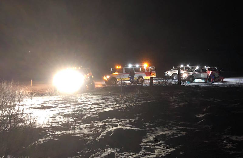 Rúmlega 20 björgunarsveitarmenn voru kallaðir út í verkefnið og komu fyrstu hópar á svæðið um klukkan sjö. En fyrstur á vettvang var hópur frá Björgunarfélagi Árborgar sem var staddur í Björgunarmiðstöðinni á Selfossi eftir að hafa lokið við flugeldasölu, þegar útkallið barst.