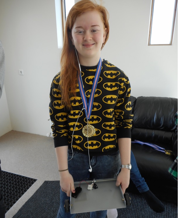 Lára Björk Gunnlaugsdóttir hlaut fyrstu verðlaun þar sem hennar bíll komst lengst. Anita Ögn, Guðmunda Sjöfn, Bára Sif og Þórdís Ívarsdóttir hlutu verðlaun fyrir frumlegasta bílinn.